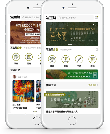 写生帮以画家服务为核心,专业从事艺术APP开发、推广、艺术品拍卖、艺术礼品包装推广。公司秉承“尽精微、致广大”的服务理念,竭诚服务好每一位艺术家。